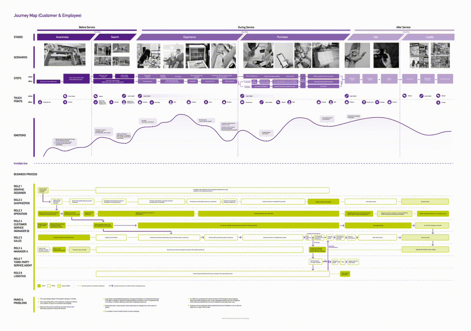 We used a journey map to analyse how stakeholders, both in front and backstage, influence customer shopping experience.